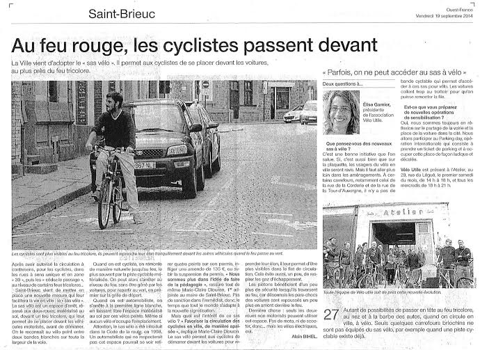 ET DANS LA PRESSE Le Télégramme dans son édition du 20 sept. fait aussi le point sur ce nouvel aménagement « Sécurité. Des sas pour les vélos »