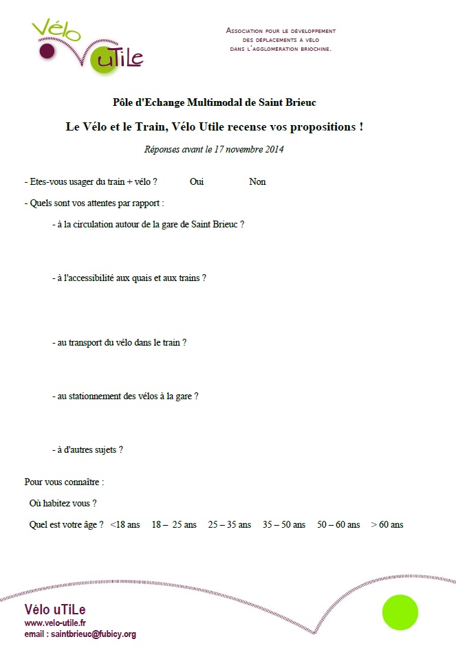 1) __Vélo Utile souhaite vous interroger__ (Réponses attendues avant le 17 novembre