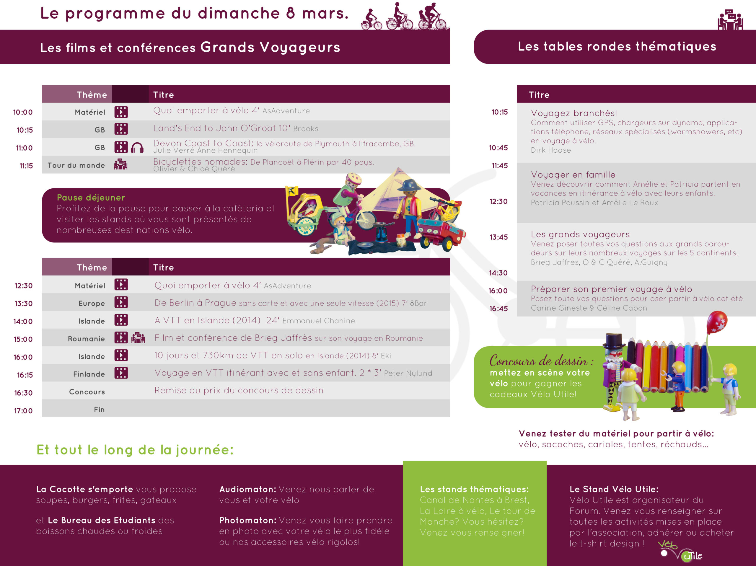 Vélo Utile propose des évènements autour du voyage à vélo les 5 et 8 mars à St Brieuc en partenariat avec l’IUT, le lycée Freyssinet et le Bureau des Étudiants de Saint Brieuc.