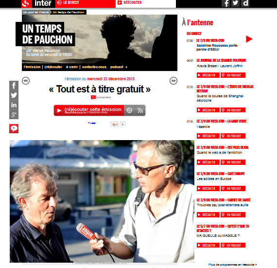 La chronique en question est intitulée « « Tout est à titre gratuit » » et vous pouvez la réécouter sur le lien https://www.radiofrance.fr/franceinter/podcasts/un-temps-de-pauchon/tout-est-a-titre-gratuit-4321907