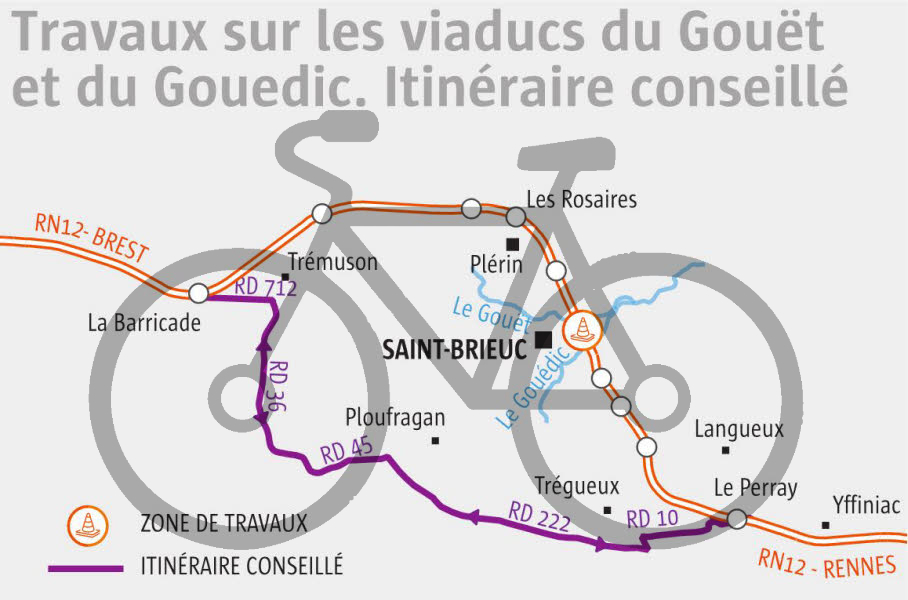 Du 26 sept au 8 oct la piste cyclable … du viaduc du Gouët est fermée aux cycliste.