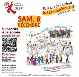 Participez à la déambulation avec Vélo Utile. Pensez à être bien visible et éclairé ! L’Amicale Laïque de Saint Brieuc fête ses 100 ans