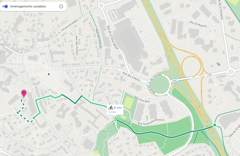 Pour s’y rendre (exemple, à partir de la sortie de la piste cyclable du viaduc de la N12)